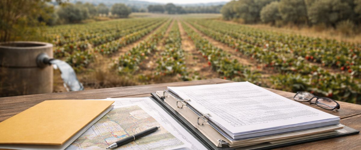 En explotaciones intensivas, la documentación técnica debe ajustar superficie regada y cultivo. Errores en la dotación o en el catastro generan requerimientos o limitaciones reales.